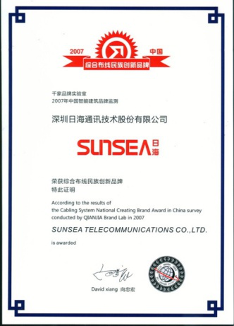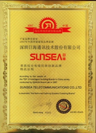 2007年11月29日~30日,金沙娱场城公司智能综合布线受邀前往上海光大会展中心酒店,参加由千家网筹办的“2007年第八届中国国际建筑智能化峰会暨颁奖典礼”,获得了“布线民族创新品牌”特别奖项。